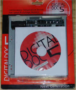On first impressions the digital doc 5 is just amazing, it comes with a total of 8 sensors for monitoring Heat and Fan RPM, the unit is very good looking and comes complete in nice packaging. You get everything you need to set it all up and some nice instructions on a CDROM Disc that is included. There are 2 choices for heat sensors (provided). The Bulb Type Sensor Probe that can be stuck anywhere and the Flat Type Sensor Probe made for chipsets and CPU temperatures. Installation is very easy just take your time and read the instructions provided. The unit fits into a open 5.25? Bay on your case and hooks up to your standard molex power connector. Now those who say ?what a waste of a bay,? well check this out, the DigiDoc5 has rails for a hard drive with a 40mm fan built into it to cool your Hard Drive! Now how cool is that? I found this very useful and was pleased with this feature. Overall construction of the unit was top notch and the unit felt very sturdy with metal rails mounting it in place. The LCD Screen on the unit has a Orange Back Light so it can easily be seen at night. The Back Light Feature can be toggled to ALWAYS ON, ON during use, and always OFF. There are a lot of features on this unit and it takes a bit of playing around to set up the first time. Best thing about this unit is it remembers your settings you program into it using a ROM Chip so it wont loose your settings if it looses power. Another nice feature I noticed while testing this unit was on the LCD Screen it shows a Voltage Meter and tells you?re your REAL +5 and +12 voltage readings from your power supply! This is really nice and helps determine how good your power supply really is and if it is overloaded or not. In our tester system I setup about 7 total probes to measure the following Temps and Fan RPM: