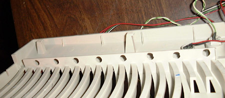 front of the case. It is hard to drill this because of the angle and on one hole the bit slipped and went through one of the vent gaps and actually