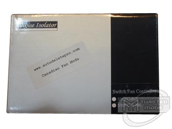 The last full-sized baybus in the fan controller roundup is Noise Isolator's 6port dual voltage Baybus. This baybus was supplied by a newly created mod store called AutoDeletePro centered out of Canada. I am not sure what the name means or am I sure what it has to do with computers, but they offered us this product for review at the perfect time while I was in the middle of writing the roundup. When they first showed me a picture of this controller on their site, I wasn't too surprised to see that it was the typical style of a dual voltage fan controller. Before I even pulled this product from it's silver and black box, I figured I might check out product specs before testing. I was surprised to see that this controller only held 6watts per channel. Either way, I was prepared to test this one to the limit with 92mm Vantec Tornado fans! Another thing I noticed, worth mentioning were the led colors. On a high voltage (12v) setting, the LED above each switch appears red, but on a low voltage (7-9v) setting, the LED appears green. Red/Green are typical LED colors on these dual voltage baybus'. The only company that has released a baybus with different colored LEDs is FrozenCPU.com which make theirs Red and Blue (only the ones which they design and manufacturer personally).