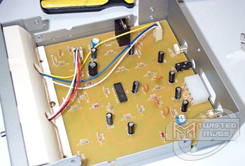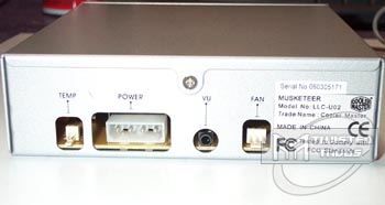 About the size of a CD-ROM drive, the unit itself is quite nicely built, from the chrome bezels around the three indicators to the sturdy sliders for fan speed and sound pressure. Closer inspection (and the help of a refrigerator magnet) gave reason for the Musketeer?s hefty weight?the housing is made from steel with a powder coat of aluminum-like paint. I gave the unit a good shaking, and nothing rattled inside or out. The clear plastic on the indicators had a solid feel, with no movement at all. As a modder, I couldn?t resist opening the housing and taking a peek inside.