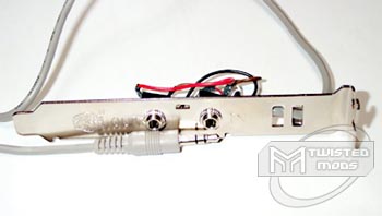 The supplied dual 3.5mm Stereo Plug Audio Cable was used to connect the audio out from the sound card to the Musketeer?s PCI audio bracket input for monitoring. Speaker output on the bracket was then connected to an Altec Lansing VS4121 2.1 speaker system.