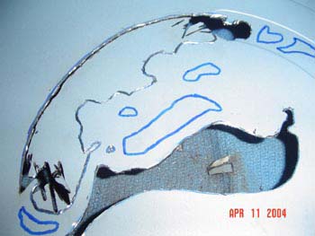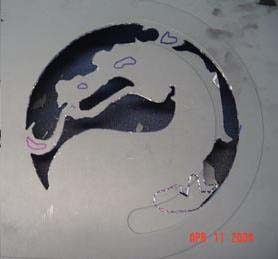 Here is another trick that you may want to use. Look at my patterns above, in the blue it almost looks like a heart. You can cut this out with a cutting blade, the trick is to stop at the right time in the process of cutting with a new blade, so the blade will be smaller in diameter from being worn down, and you can actually fit it into the small area to cut.
