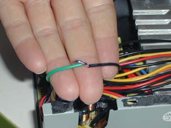 Here at the twistedmods.com labs we find ourselves time after time with no easy way to quickly test fans, CC lights, and other Molex connector devices. So we decided to mod an ATX power supply into a tester! Now since we won?t be using this power supply for motherboards we did some pretty crazy mods to our tester as you will read in this guide which will teach you how to make your own! **WARNING THIS MOD VOIDS YOUR PSU WARRANTY** Twistedmods.com is not responsible for any damage or injury during this MOD and you should proceed at YOUR OWN RISK. Power supplies can be very dangerous when opened up and worked on due to the fact that power supplies can hold a deadly amount of voltage for a long period of time even after the unit has been switched off and unplugged. Before attempting this MOD I would let the power supply sit for about 1 week so that all the power stored in the capacitors has been drained out of the psu. Now the first step for this MOD is to find the atx power supply activation wires (the wires that make the PSU turn on) Here in this picture you can see the correct wires to use for the PSU activation circuit. (Green Wire and any black ground wire) After you have found these wires simply splice them together and use a soldering iron to keep the connection tight. Then make sure to cover the wires with Electrical tape to insure no shorts occur. Now for our MOD we cut all the rest of the ATX motherboard power connectors since we won?t need them anymore. But when you do this make sure you cover the ends of the wires with Electrical tape to insure nothing shorts out as this can kill your PSU. We also cut off the p4 atx connectors since we wont need those either. Repeat the steps of covering the wires with electrical tape for safety. After everything is complete simply put the PSU back together and test it out! It should power up as soon as you plug power into it. Now you have an awesome tester power supply you can whip out quickly and test anything with Molex connections! If you would like to find info about purchasing or installing the clear cover window kit for your PSU goto : PSU Mod How-To A Glance of the two "hot" wires... Here We are clipping all the ATX connector and p4 connector wires. Once Cut, you have several open ended wires..DANGEROUS A Nice electrical tape job does nicely. After everything is shielded proceed with soldering the "hot"wires... Once the cover is back in, here she lies in all her glory. Flip the switch on that baby and test all the fans m CCFL's and LEDS you want! |