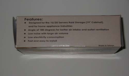 Click on pictures for larger size. Pic-1: Front of the box, not the most attractive colors but it does the job. Pic-2: Side with features of the fan:?