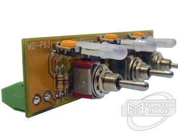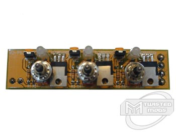 After having burned myself while testing the Sunbeam, I was a bit scared to test another unit the same size in fear of killing myself :). It was a dirty job but somebody had to do it! Anyways, the product came to me in a small cardboard tube capped at both ends ? something which I had seen before while reviewing another one of FrozenCPU?s baybus? a while back. When I opened the end of the cardboard tube, it was almost like Christmas all over again; you would not believe the number of things that FrozenCPU included with this product. Included with this unit is the fanbus itself, a drilling template, a set of instructions, led brackets, a y-power splitter, as well as three cables which had molex connectors on one end and are stripped on the other. Starting with the fanbus, quality was exceptional. After taking a quick inspection of the entire controller, I did notice a few spots where the solder had gotten to hot and started to burn the PCB slightly, but it certainly did not hurt it bad enough to effect performance. Options are pretty much unlimited with placement of this baybus since it does not come preinstalled with a faceplate, but this also allows the user/modder to get a feeling of do-it-yourself. On the front of the unit are three baybus switches (3-position) as well as three LEDs which are located directly above each of the switches. Each of these LEDs show red on the 12volt (high) setting and switch to a blue color as the power it switched to 7-12volt (low). If you so desire to change LEDs on this unit, it is fairly simple, just unsolder each of the three prongs from each led and replace them with another 3-prong Led?my choice would be blue/white LEDs. Since the unit itself is so small, FrozenCPU has decided to solder each of the transformers in the front of the PCB, between the faceplate and baybus, to allow for more room for fan and power plug-ins on the rear side. Before I flipped the baybus around, I did notice three yellow switches on the unit which I later found out from FrozenCPU?s website that these are referred to as a ?pot? which are able to change the low setting on each switch between 7volt and 9volt which means you can decide how fast each switch will run a fan on it?s low setting. For testing purposes, we will leave each of the three pots as default. On the rear of the baybus, I was surprised to see how spaced out everything was. On the far left of the unit was the molex connector which supplies power to the unit and on the right side are three terminals which you screw fan tails into as a type of connection. To prevent from having to cut the connectors off each of your fans like many baybus? on the market alike, FrozenCPU has also included those three wires which have a molex at one end and are stripped at the other. Before installation, you screw the tails of these special wires into the baybus terminals and plug your fans through a molex connection, into the other end of the cords. This makes it especially easy to install with the most demanding fans out nowadays since it is almost standard to have molex connectors! For those of you with older fans or just less demanding fans electrically, this will be a problem provided your fans are 3-pin connectors by default. In that case, you would need to cut the connector off and screw it directly into the rear of the rheobus.