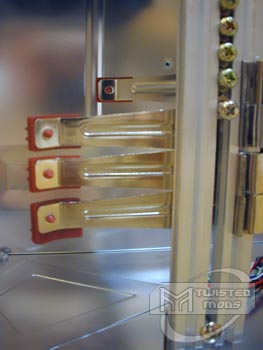 Page: 2/2 You can see how the top chassis-rail clip is being pushed inward, where the AGP card might be, by setting a screw behind it. This picture shows the chassis rail to make hardware installing much more convenient. It's a bit hard to tell, but check out this gives you a general idea of the aluminum GRAIN on the top paneland rest of the case. < Previous Page 1/2 |