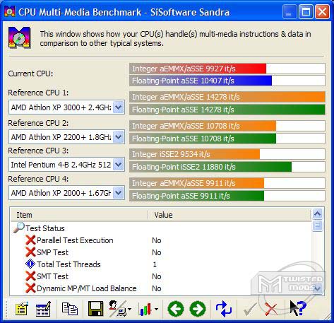 Test-Bed System Specs: ![]() This benchmark was taken with my graphics card in the board. As you can see the performance was very good! The graphics card used on our previous Soltek SL-75FRN-L review (Gainward GeForce4 Ti4800 SE 128MB) only recieved 10,389 3dmarks... ![]() I even tweaked the settings for this one, but this is all the performance I could get out of the onboard unit. If you?re planning to browse the internet with this board that?s cool, but DON?T try to play any games. The NVIDIA GeForce4 MX440 Graphics Unit included on this board features no pixel shader, which required me to pass a majority of the tests in 3dmark. ![]() This was taken with 512mb Kingston ram at 266 MHz. ![]() These are the cpu arithmetic results with an AMD Athlon XP 2500+. ![]() This was taken with 512mb Kingston ram at 266 MHz. ![]() This was taken with the AMD Athlon XP. ![]() These were taken with my friends Athlon XP 2200+. < Previous Page 4/6 || Next Page 6/6 > |