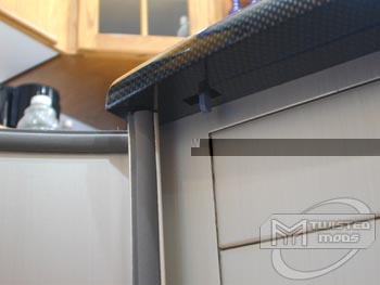 A quick look at the door from inside will reveal some of the attention to detail for which Lian-Li is known. In the first picture on the left, you can see that the front door on the PC-73SL is easily removed with the touch of this quick release tab. This light blue plastic tab is located on the upper carbon-fiber style plastic, and releases the top end of the front door when pressed to the left. Once the top end of the door is released, you simply lift the bottom end out, and you are good to go. You may choose to display your chassis with or without the door ? that is entirely up to you! Also (not pictured) on the right side of each of the plastic carbon fiber style pieces are spring loaded balls which hold the door closed and easily release when the door is tugged using the ?edge? on the right side. This will keep the door from flying all over the place during transportation.