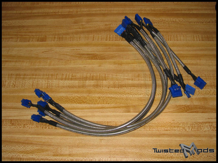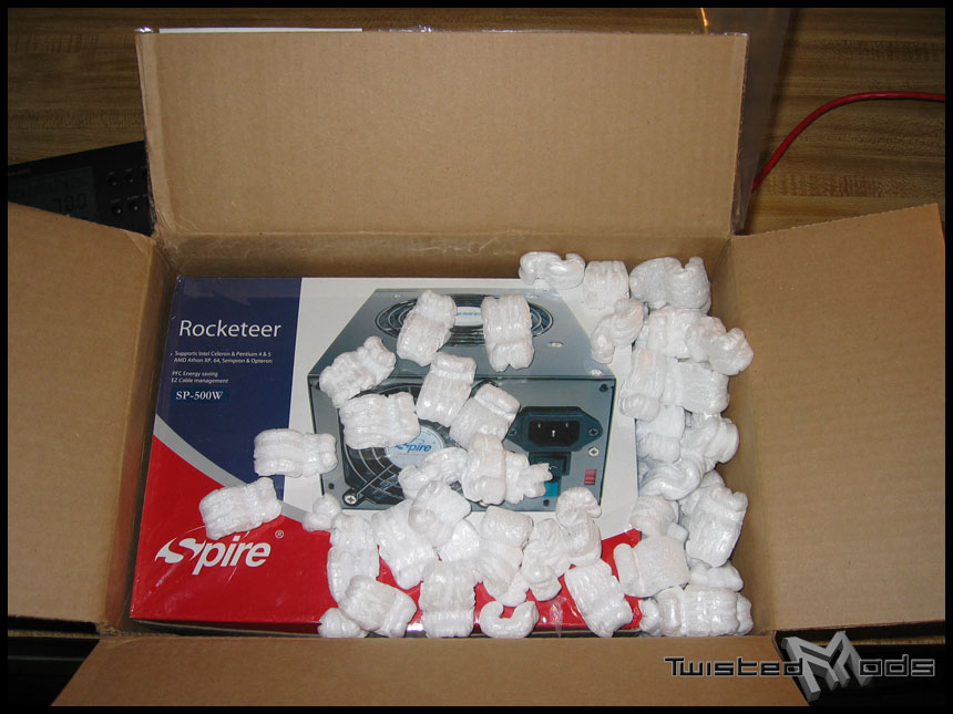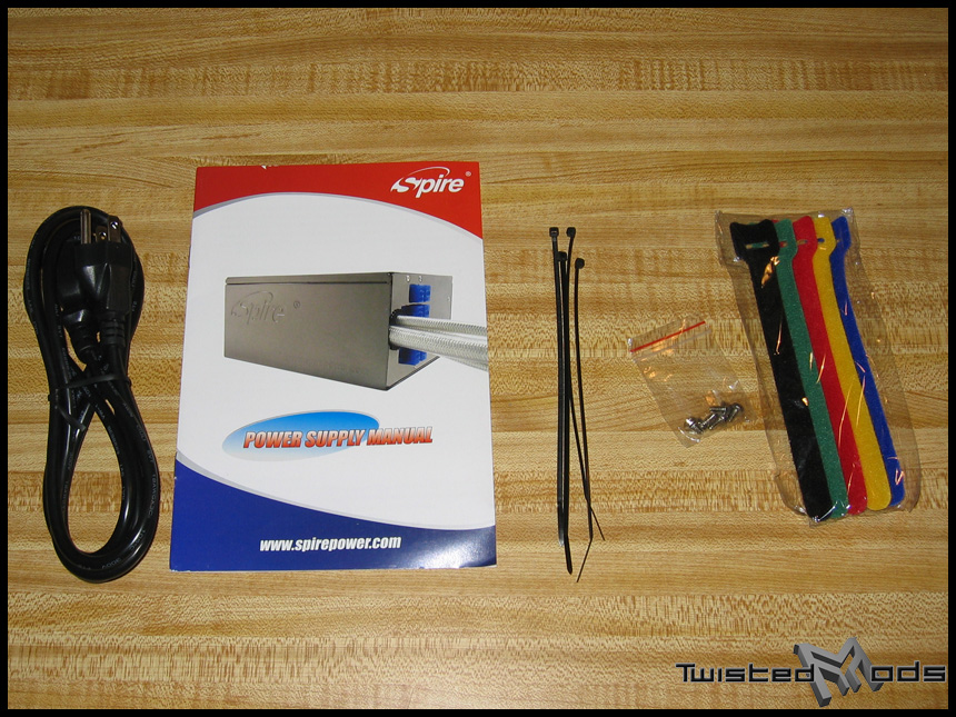 The RockeTeer V came well packed directly from Spire. Spire provides the user with a power cable, manual, mounting screws, a few zip ties, and some Velcro cable straps, which can be used for tidying up cables inside your case. The power supply has an incredible mirrored titanium finish, the pictures don't do any justice to it whatsoever, so we'll look at the finish in detail in a few moments. The back of the unit contains all the standard items found on the back of a power supply; exhaust fan, power switch, AC input, and a voltage selection switch (preset to 115v). The large green button, is an override for the automatic fan control, and when pressed, engages the large 120mm fan on the bottom of the power supply. There is a blue LED (to the right of the power switch) that indicates when the button is pressed. As for the cables, Spire spared no expense to provide a variety of options to ensure the power supply would work with computers, both new and old. A total of 6 modular cables came with the unit, which brings the total connections to the following: 1 PCIe, 2 SATA, 6 Molex (hard drives and 5.25” drives), and 2 FDD connectors. I was disappointed to see that the SLI Ready Power Supply only came with 1 PCIe connector. A couple other things worth noting regarding the cables – The plastic on the SATA connectors is fairly thin, and can crack if you're not careful. The PCIe connector comes equipped with a ferrite coil, for removing EMI – very cool. I was slightly disappointed to see that they only included 6 molex connectors; considering the fact that I have 6 hard drives in this system; “Y” adaptors had to be used to ensure everything was powered, which made the cabling look messy. The other thing worth mentioning on the cables, is that they are coated with a transparent plastic after they're sleeved, which makes them VERY stiff. This could be a problem if you need to make a sharp bend or have a small case where room is tight. Other than that, it's a beautiful modular setup. < Previous Page 2/6 || Next Page 4/6 > |
