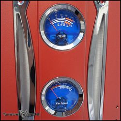 Page: 3/6 Details Getting into details, I'll start off with the front panel of course, as it seems to be the most interested and eye catching part. First thing you'll see are the 2 gauges surrounded by chrome rings, and a blue backboard with the lettering. One is for monitoring the temperature of either the cpu, vga, hdd, psu, memory, mb, or just simply the case, it comes with a sensor that you can stick anywhere and it will read out the temperatures. The second gauge is to monitor the fan speed, it monitors it by showing the percentage usage of the fan. An inch below the fan speed gauge is the fan controller, it can control up to 5 fans at the same time. On both sides of gauges there are 2 frosted pieces which light up once the case is turned on. A little below the LED's is a lock to keep the door closed and computer protected. Behind door number 1, you will see the 4 5.25" drive bays, with the power/reset switch, a HDD activity and power LED. While observing that area, I also noticed the black sleeved cable that powers all the electronics on the door. It was carefully guided through the panel so you can open and close your door freely, a big plus for that. Here are the power/reset switches, along with the LED's. Now this is probably my most hated thing about this case, the reset switch. It is so damn small, my finger doesn't come close to pressing it, it's literally impossible unless you have baby fingers. In order to reset the computer, I had to use a pen, al though I'm sure a pin would work but I didn't have one anywhere around. Moving on... the LED's, standard green and red color, doesn't bother me and there's nothing wrong with them, but would have been cooler if they were blue, matching the rest of the case's lighting theme. < Previous Page 2/6 || Next Page 4/6 > |
