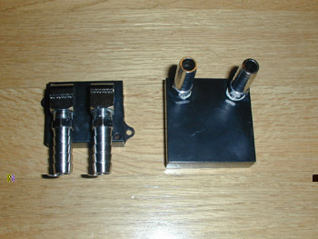 First impressions were very good. When I first looked at these two products, I realized the detail that Brian from AquaStealth had put into them with the black and chrome. Further discussions with Brian, the owner, taught me that these two blocks are black powder coated, which is like black plastic melted to it to keep it from chipping and wearing. Also- I had found that the barbs to connect the tubing were chrome plated. This creates an outstanding appearance on a machine! The surface at which the CPU and video card chipset touch the actual blocks have been kept copper with no powder coat, to maximize cooling performance with little thermal resistance. This will help the performance aspect of this product. The groove pattern inside the CPU block is an M maze and the groove pattern on the video card chipset cooler is a U shape. The M maze is a little less popular amongst the CPU blocks, but I am sure there is a reason for this?we will see when we test the performance of the product. As for the video card chipset cooler, the U shape is quite popular due to the small amount of actual volume you have to cut the groove. Both of these copper blocks are sealed and tested prior to shipment with approximately 100psi of AIR. Rather than using a ?goop? to seal the blocks, Aquastealth took the time to solder the blocks back together after cutting the grooves to insure a perfect seal.